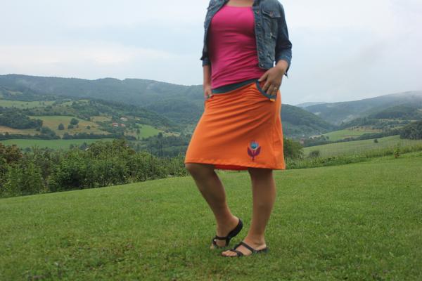 Jupíí stránka 3000! @caramilla sukně opět nádherná... a to oranžovou nemám ráda 😉 a tenhle hnědý šátek se k ní nehodí?