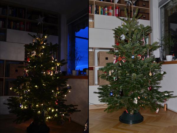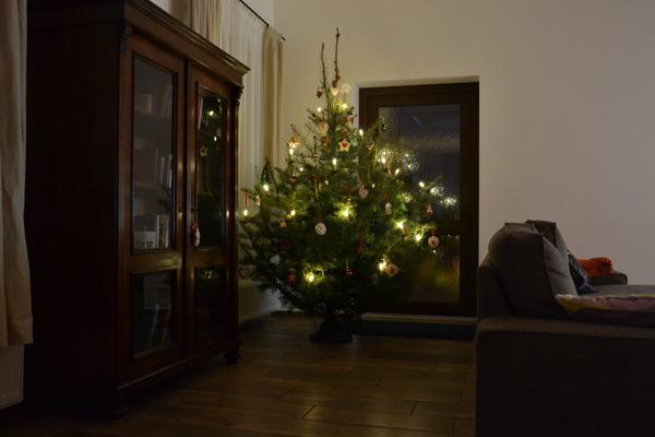 Teď jsem si teda taky chvilku hrála, abych vyfotila stromek, který jsme právě dodělali a fakt je to těžký, ale myslím, že jsem nakonec tu atmosféru vystihla. A není to zase až tak OT, protože je na něm plno ozdob doma šitých 😀
