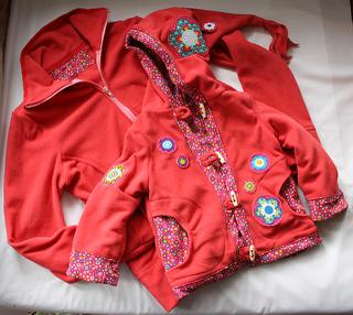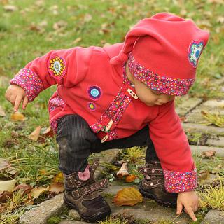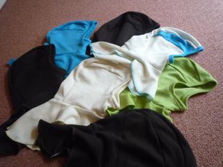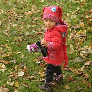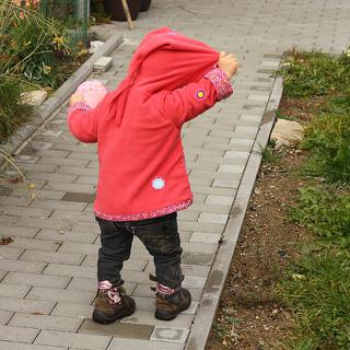 zatím jsem vyrobila první svrchňáčky, měla jsem málo lemovací gumičky, tak je to olemované Irmou z Ikey (jiný flees jsem doma neměla) - špatná příprava a veliká chuť šít...