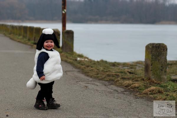 Malá šla v ovečce, co měl synek loni (zrovna frčel Timmy).