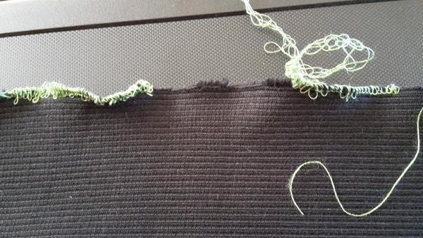 FOto 2: Pružný overlockový steh (mého Pfaff) - je to šito na softshellu, proto je to tak hezky rovné🙂