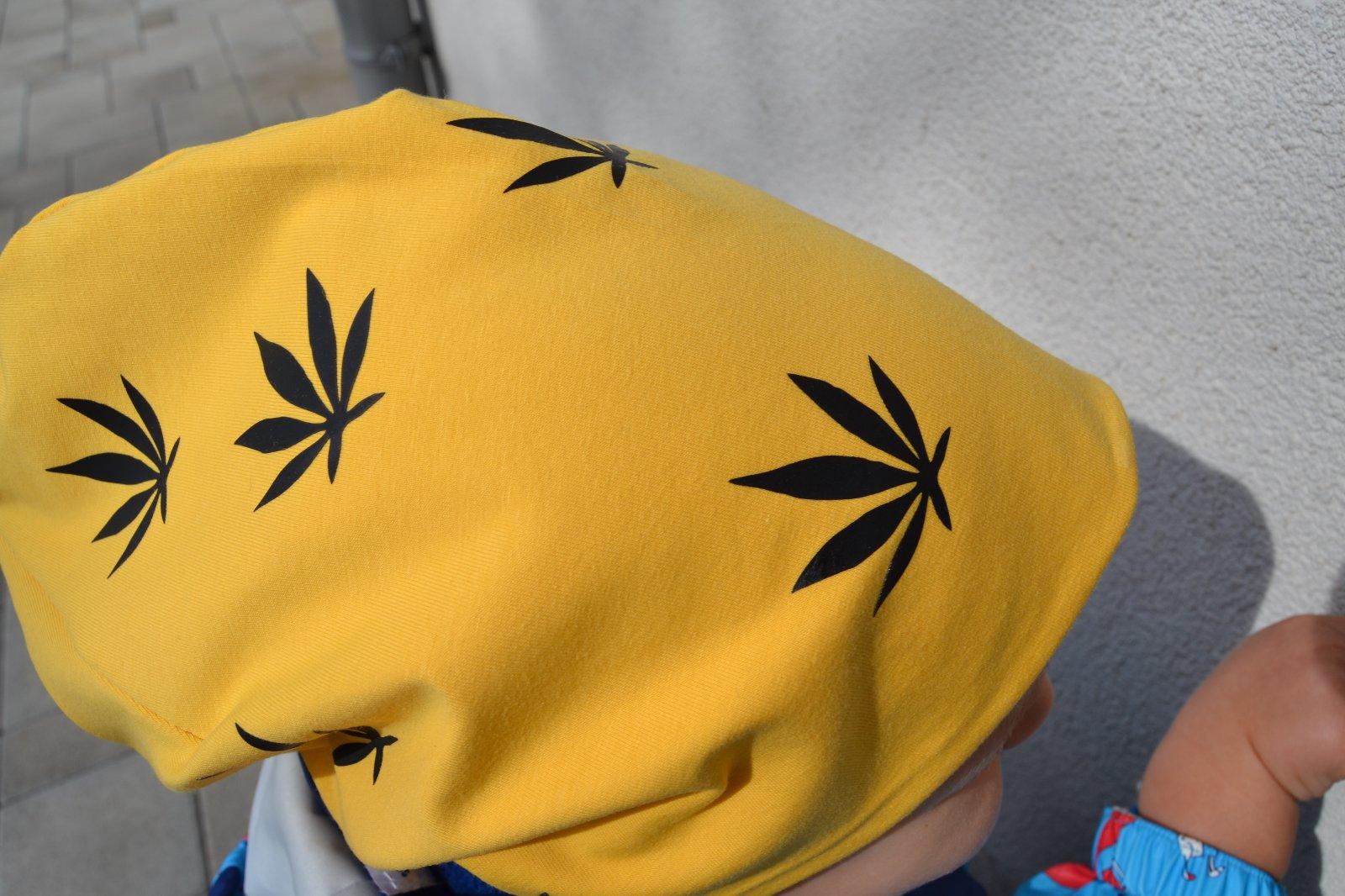 naše tepláčiky a čiapočka 🙂 ešte k žltej čiapočke musím tepláčiky ušiť 🙂