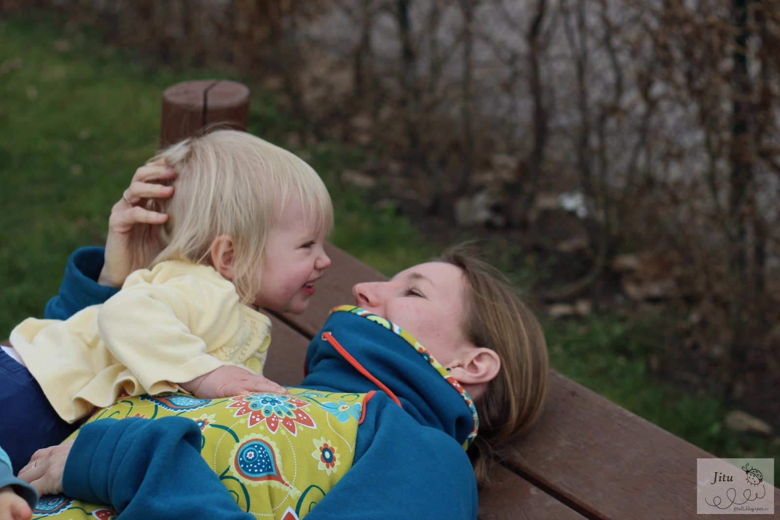 Něco pro mě aneb Potřebuju se odměnit 🙂 Mikina z warmkeeperu, fotky z nedělního pikniku, což je eufemismus pro rohlíky se šunkou, ovoce, zeleninu a pití v parku. Restaurace jsme na nějakou dobu odpískali, s našimi ratolestmi je to totiž vysoce adrenalinový sport 😀