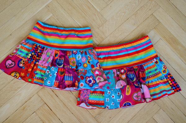 Dostala jsem od tchýně hromadu látek. Tolik materiálu, že jsem si mohla dovolit ušít i bohaté kolové sukně pro sestřenku Verunku a Kristý. Jen ta moje potvůrka si nenechala vymluvit, že ta větší bude Verunky. Verunka tedy dostala tu kratší a Kristýně jsem tam už nenašívala kanýr. Vlastně mi ušetřila práci 😉