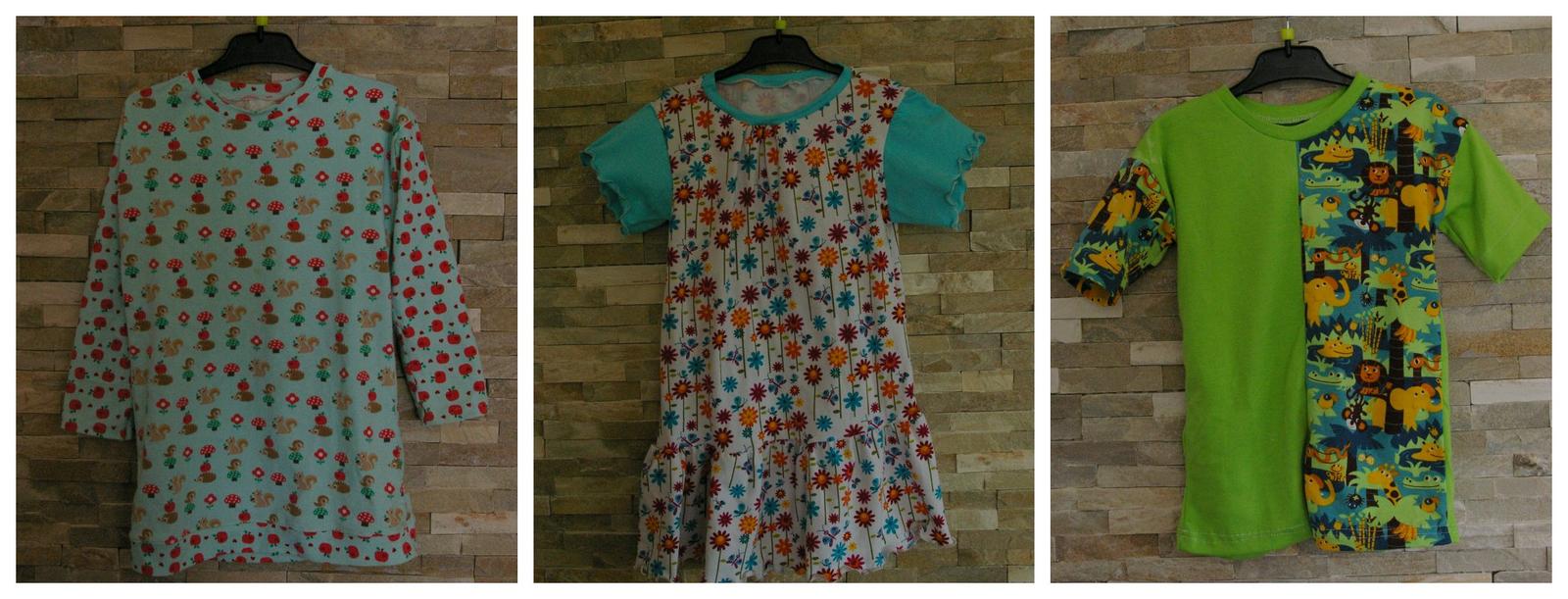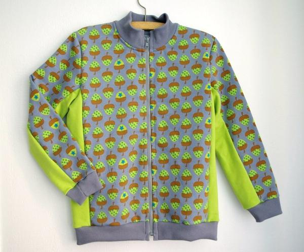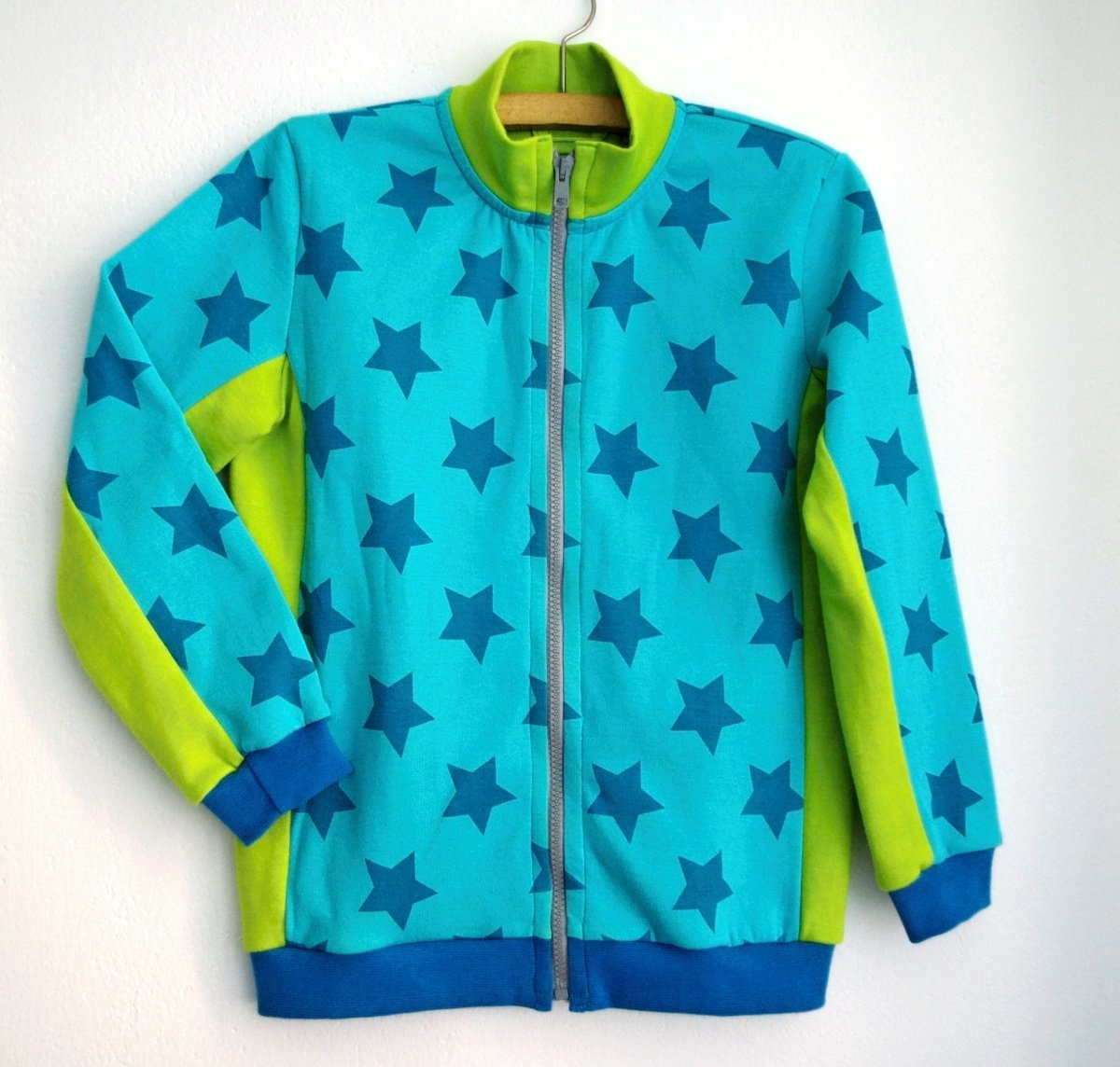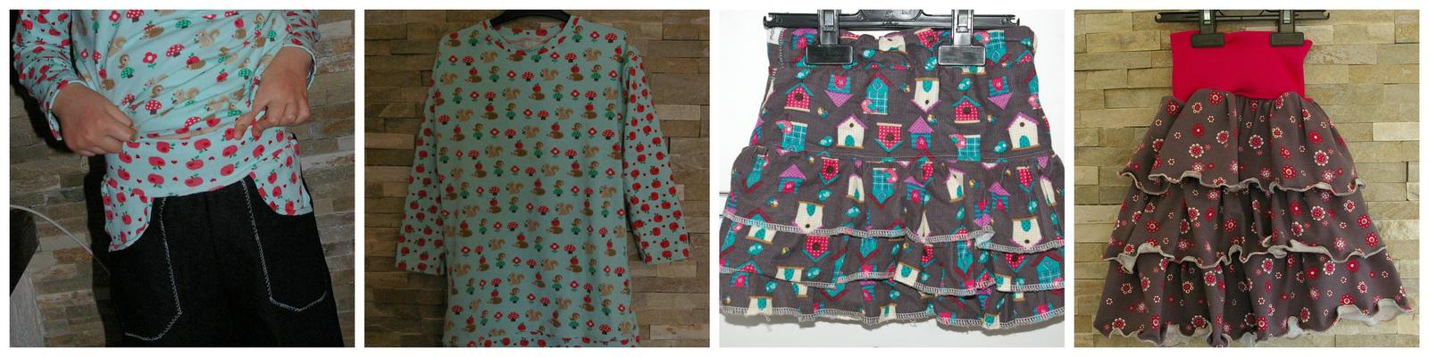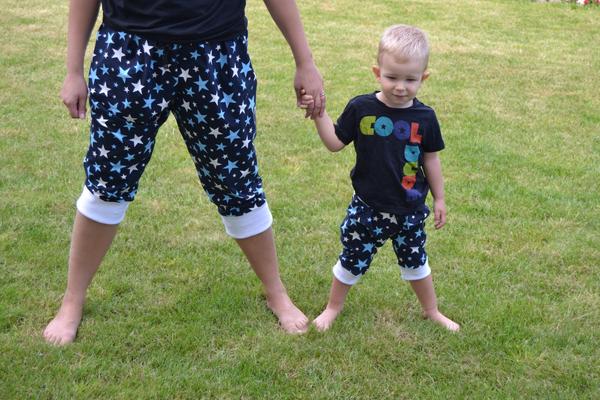 Děti jsem poslala včera odpoledne s mužem k babičce, tak jsem se vrhla na šití. Dnes si pro ně jedu, nejstarší dostal vysoké horečky☹ Recyklace manželových riflí, Levi Strauss by měl možná radost, že jeho džíny mohou nosit i dvě generace🙂 V pase regulační guma, protože syn je hubený a druhý ještě hubenější. Využila jsem z původních riflí téměř vše. Není to nic na parádu do školy, ale bylo potřeba něco odolného na výlety, do skautu apod. Syn se bez dozoru stále válí po zemi a je schopen zničit cokoliv. V Ottobre 1/2014 se mi moc líbila hvězdičková mikina, náhodou jsem narazila i na stejnou látku, takže je opravdu téměř stejná a pak se stejným střihem i žaludová. S klukama jsme razítkovali. Pro dcerku legíny z parádní látky, na ty jsem se těšila už když jsem látku objednávala a z viskózového úpletu šatičky, ozdobené lemovací gumičkou, protože se prostě barevně parádně hodila.