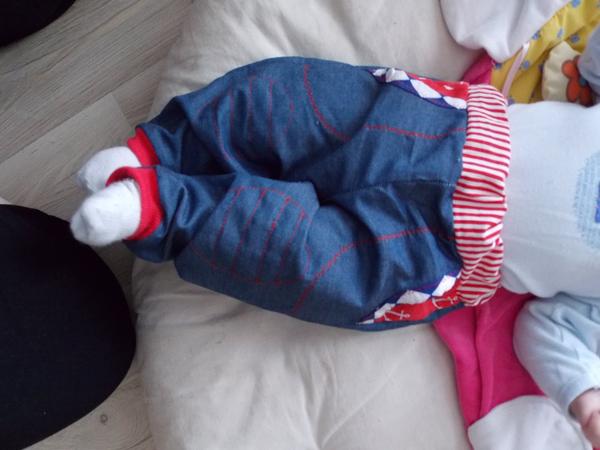 @behulka robila som najmenšiu veľkosť, babuľka sa javí malinká na sone, tak isto budem zmenšovať, uvidíme v reále, ešte nemám kliešte na patentky, tak neviem zmenšovať, ale vyskúšam tie patentky na pásiku -asi zo stoklasy, čo to vydrží, dvoje nohavičiek som zatiaľ ušila, tak jedno skúsim zmenšiť patentom