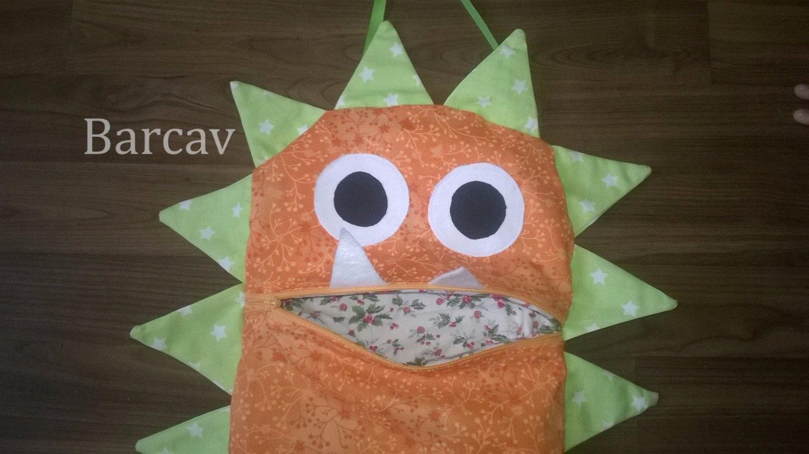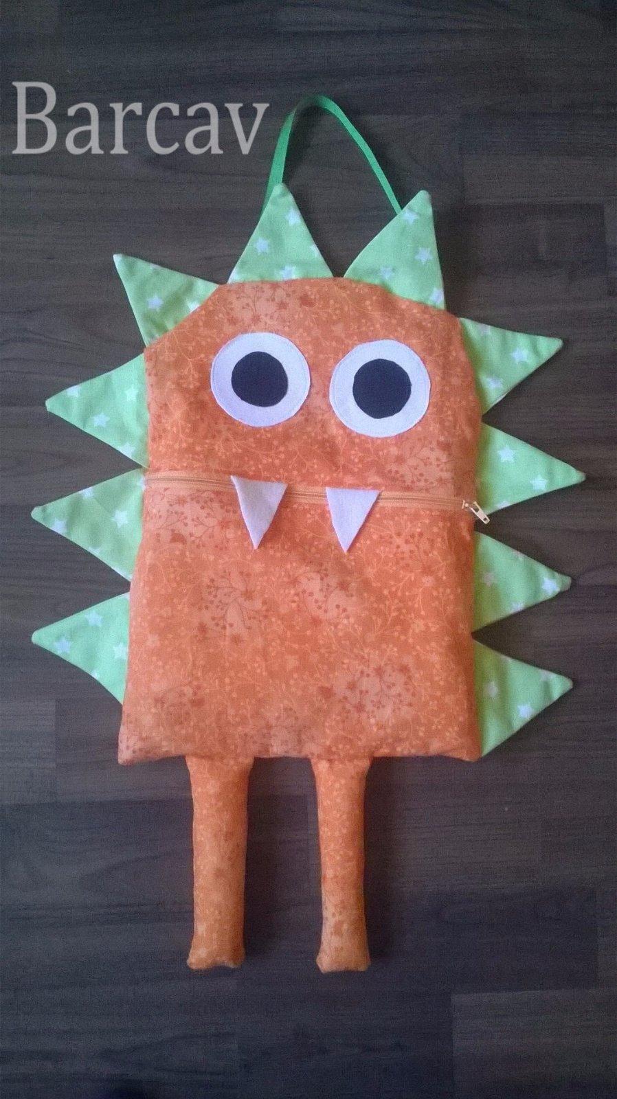 příšerkový pytlík na oblečení do školky, konečně jsem se dočkala 😀 v první i druhé školkové třídě měli pytlíky erární, tak teď jsem mohla ušít do předškoláčku.
