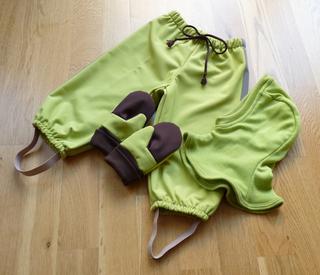 Rukavice z Ottobre jsem zrovna včera šila taky, do narozeninové sady pro kamarádčinu holčičku. Na kalhotách jsou dole ty gumy pod boty, jak tu o nich šla řeč, já si bez nich nedovedu zimní gatě představit, aby se to nevyhrnovalo, když si dítě ve sněhu dřepá atd. Mám to na dva knoflíky, dírkovou gumu, takže se dá utáhnout dle potřeby, špinavá samozřejmě je, ale to mi nějak nevadí, ono to do druhého dne zas uschne, za tu praktičnost to stojí. Kalhoty dávám v zimě výhradně přes boty, naopak do bot padá sníh a ani to nedrží uvnitř. Kukla je ten free střih Ottobre, dvojité Mylly merino, takže hezky schované švy a dobrá zimní tloušťka. Snad bude i foto na modelce.