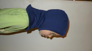 Dnes jsem ušila dvouvrstvou kuklu z climayarnu, střih Ottobre a dala jsem tam dozadu gumu - tím fixuju ty vrstvy k sobě, ať se to neposouvá a líp to i sedí.