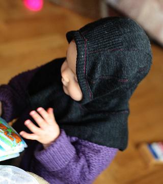 Jinak guma pomůže na stahování do čela celkem dost, ale pokud máš tu kuklu tak volnou, stejně se to stáčí (Jiříkovi musím ušít další - menší kukličku, má asi 50,5 cm hlavu, kuklu jsem šila 52 a je asi velká, nesedí tak, jak Janě ta 48 🙂 pokud mu bude malá, vynosí to Jana...jen potřebuju upravit to čelo (uvidíme, co mi opičáci dnes dovolí...). Chci ještě ušít Janě pyžamové prodloužené triko ke gatím, co už má...ze zbytku froté...