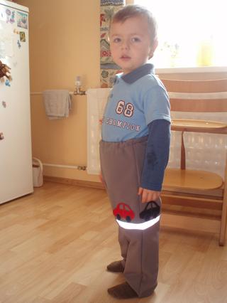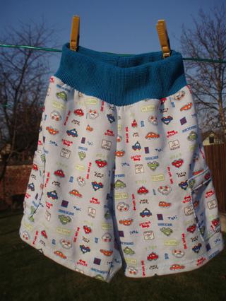 Min. týždeň som stihla kraťasy z wendy teplákoviny (sú u nás v škôlke skoro povinné - kraťasy na pančušky). Celkom pekne sa mi podaril ten patent v páse prišiť (sa chválim, lebo sa bojím, že nastane len taktné mlčanie... 😀 ). A soft gate - obyč v páse a dolu na gumu. Aplikácie sa páčia malému aj mužovi, takže ok. Akurát tú teflexnú pásku som našívala, až keď boli gate hotové - a vzdávala som vďaku za voľné rameno na mojej mašine...