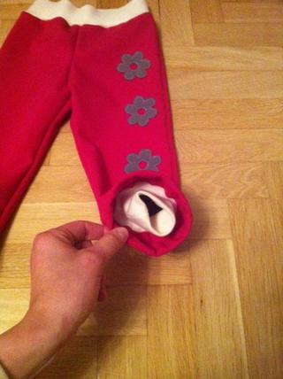 Ty nohavice dole má Jasmínka tak 12 cm a přes botičku je to tak přesně akorát, hezky to tam drží napasovaný (přes sněhulky) 😉
