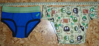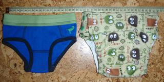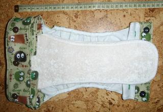 Pre porovnanie velkosti su vedla slipky na 1,5/2 roky (86/92). Nafotila som mensiu aj najvacsiu moznu velkost (este bz sa dali ymensit, len som este nenaklincovala patentky). Matros: pul hnede ooga-booga, zelene patentky (z DetivBA), dryliner (z mylly) zvnutra, zaklapanie na magnetky (bezna galanterka). Vkladacka: bambusovy aksamit 1x, konope-biobavlna 3x a bambusove frote 1x (dve ciastocne oddelitelne vrstvy pre lepsie schnutie), mozne doboostrovat konope-bioba 3x (z DetivBA).