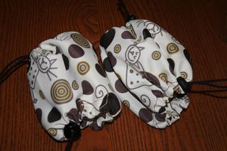 Ještě vkládám fotky drobností co jsem už zvládla ušít: návleky z kočárkovýho šusťáku, ještě do nich všiju gumičku pod patu