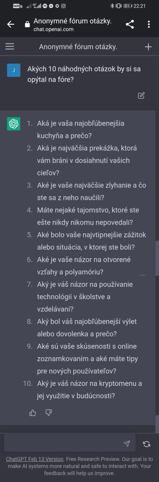 @pukina vyzera to akoby najali premotivovaneho tinedzera, ktory zaklada random temy a spolocny znak su, ze text obsahuje dve otazky 😂 toto ani ten vcera spokinany ChatGPT nebude, mam o nom vyssiu mienku, jedine, ze by zadanie bolo, ze akych 10 random tem by si zalozil na Modrom Koniku 🙈