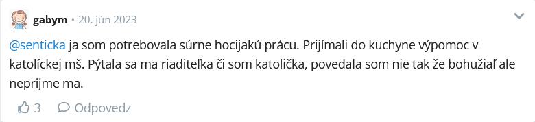 @tykat našiel som jej príspevok v https://www.modrykonik.sk/forum/zamestnanie/je-toto-dovod-pre-neprijatie-do-zamestnania/ nakoniec to bola kuchárka a nie upratovačka