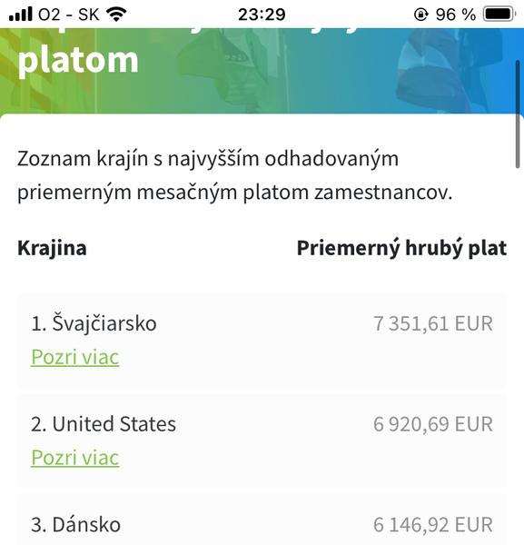 Tu Švajčiarsku mzdu si vygooglila nesprávne, ale verím, ze si dogooglis, koľko stojí vo Švajčiarsku zdravotné poistenie, aká sa tam pri bežnom poistení platí spoluucast, ze nie je bežné si lekára vybrať, rovnako si dogooglis, koľko tam stojí opatrovateľka a nájomné malého 2izboveho bytu v zapadákove. Švajčiarsko je zasľúbená zem pre slovakov chlapov, ktorí tam chodia pracovať a franky zamieňajú za eurá na Slovensku a žijú na Slovensku. Na to, aby si mala v Švajčiarsku, s ich šialenými životnými nákladmi, aspoň aký-taký štandard, ti priemerná mzda nestačí. Verím však, ze keď je Švajčiarsko tvojim snom, ešte si o ňom co-to naštuduješ a nebudeš kopírovať len facebookove prirovnania vytvorené na margo zvýšenia diaľničnej známky na Slovensku.