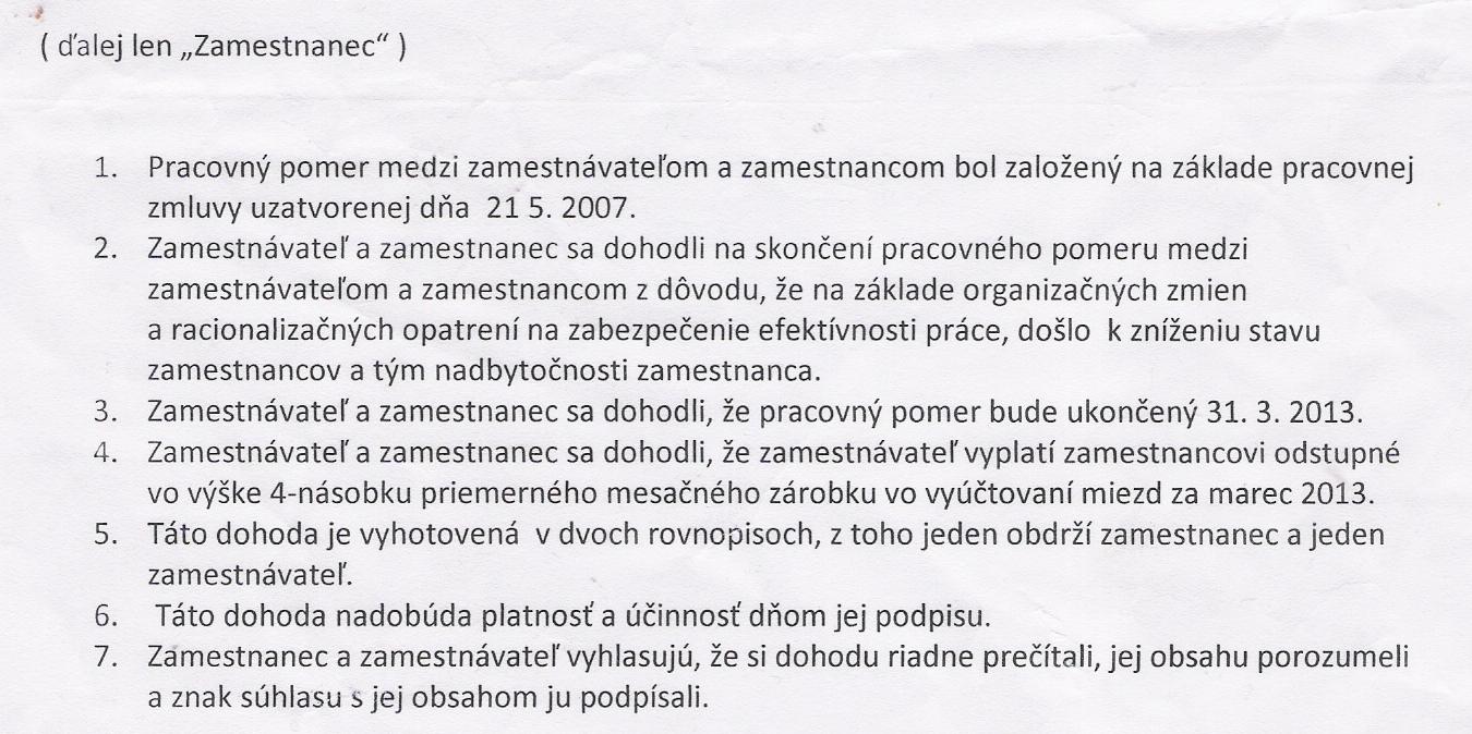 @gapa Ahoj,poprosím ťa o radu ...bola som zamestnaná od11/2008(predtým u iného),v 3/2009 som nastúpila 1.MD a potom na RD,na druhú RD som nastúpila 11/2010 a doteraz som na RD...so zamestnávateľom som sa dohodla na nástupe 5/2013 stým,že ma dajú na nové pracovné miesto,ale teraz chcú,aby som nastúpila na pôvodne miesto s tým,že podpíšem dodatok ku zmluve,pretože za 4 roky sa toto miesto zmenilo.Dodatok je veľmi nevýhodny pre mňa a preto som rozmýšlala o výpovedi.Chcú mi dať výpoveď s trojmesačným odstupným.Budem mať nárok na podporu?Mám nejakú šancu nastúpiť bez podpísania dodatku?