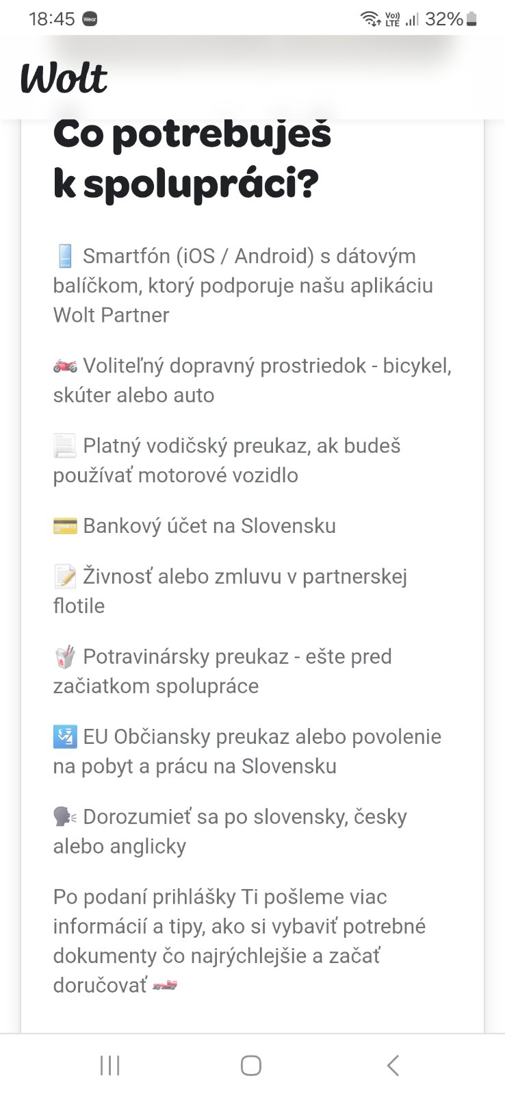 Podmienky na prácu kuriéra pre Bolt alebo Wolt