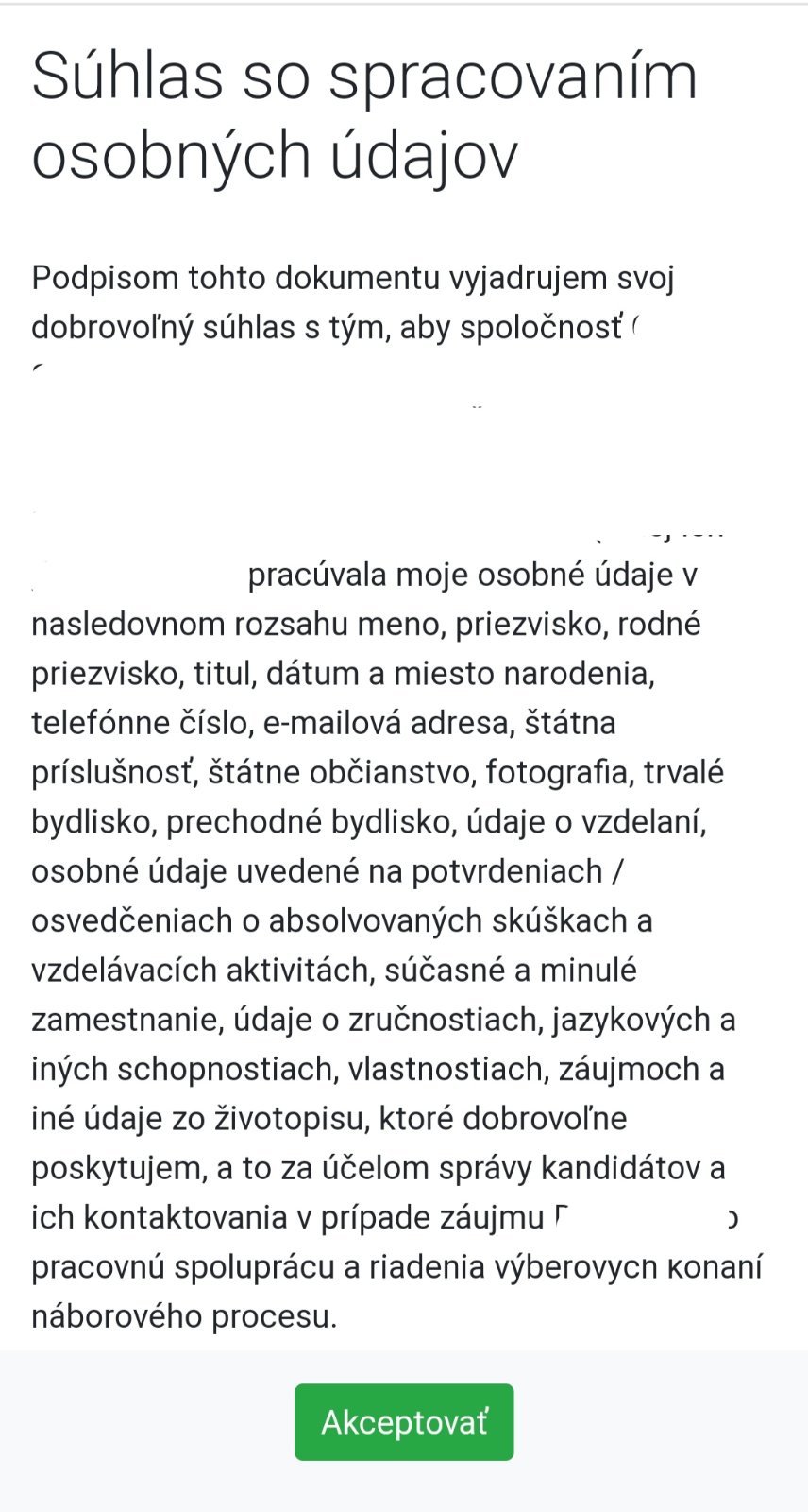 @melanta a ked ti kandidat posle aktivne svoj cv, pytas si od neho suhlas na spracovanie osobnych udajov? alebo proste - nenapisal si si to tam, tak smola, neriesim, a tvoje cv skartujem?