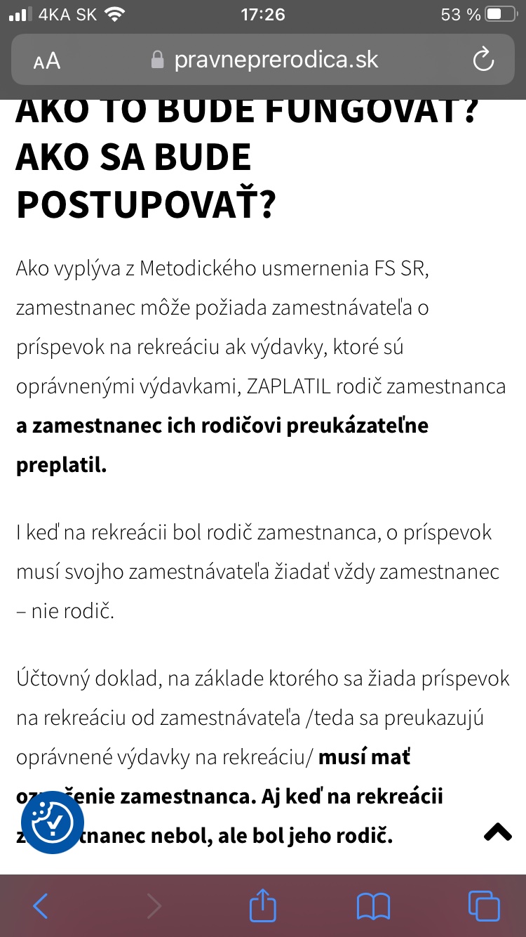 @skeblicka777 tak u nás vo firme napríklad nestačil len bloček z terminálu, posielala som aj potvrdenie z banky... Ak si chce autorka preplatiť rekreačný, musí zdokladovať že rodičom pobyt preplatila, ideálne výpisom z banky