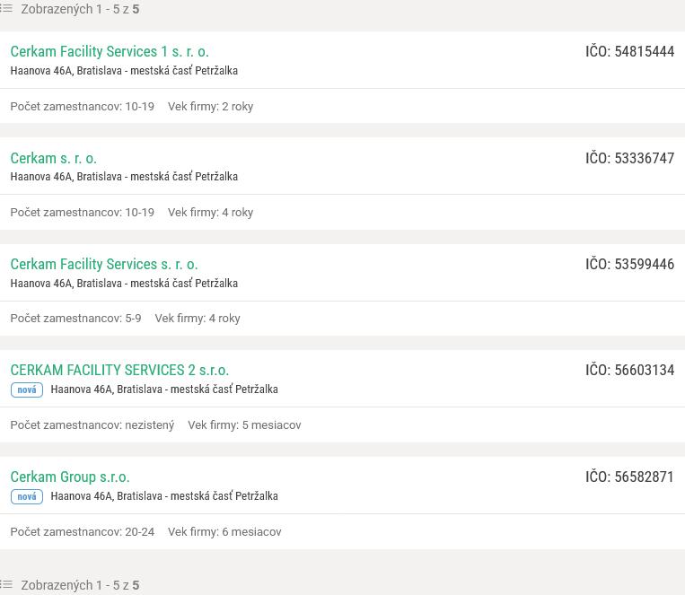 @maranco čo som pozeral, nebude to skôr aj Cerkam Facility Services 1 s. r. o. teda, majú rovnakú adresu. Nedoplatky len tieto: