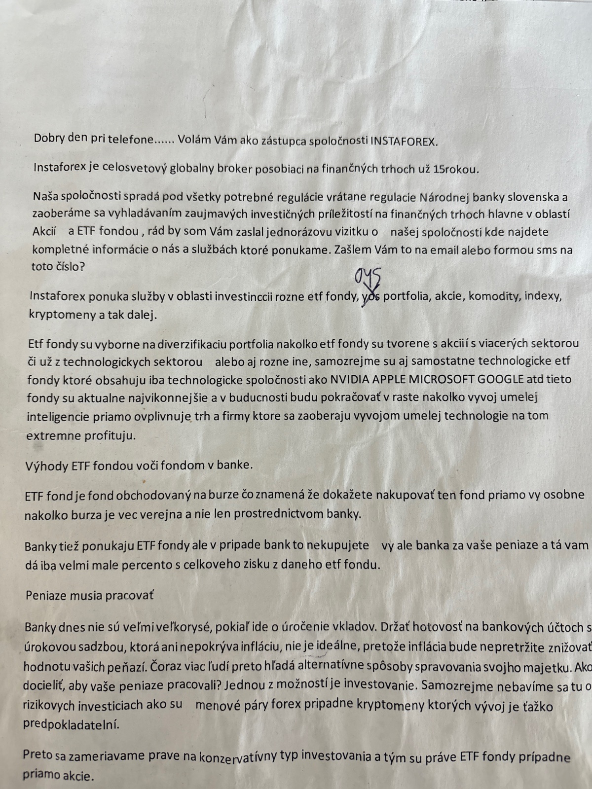 Tvoj šéf tá zároveň navádza na to aby si ľuďom poskytoval klamlivé informácie nech majú čo najviac klientov (na fotke je text čo sa budeš mat naučiť naspamäť). Ak do 2 mesiacov Neoklameš aspoň 2 ľudí nech si založia účet máš výpoveď. Jediná výpomoc šéfa pri tom keď si telefonoval bola taká že, keď si nevedel čo máš robiť tak na teba zakričal “More volaj” a tam to skončilo. Druhý menežer sa síce snaží svojmu tímu pomôcť a zaškoliť ich ale o nič lepšie to neni, pri ňom keď si dáš na 3 minuty oddych od obťažovania klientov už ti nadáva že prečo nepracuješ a Jak si si dovolil netelefonovať.