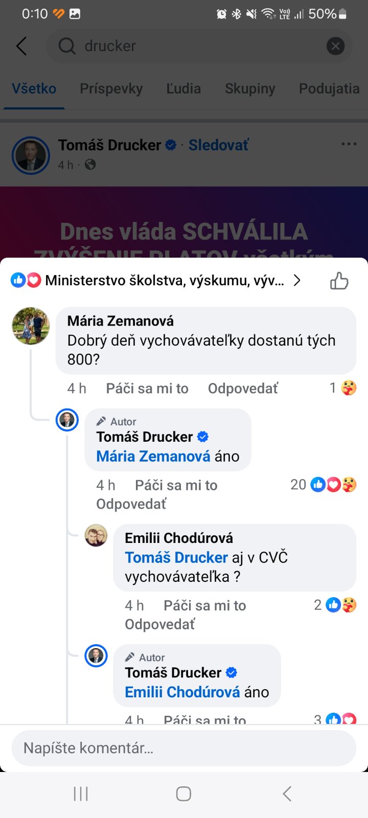 Po korone, keď dávali tých 400niečo sme museli bojovať, aby nám ich vyplatili, lebo to bolo určené pre učiteľov. Bolo jedno, že veľa z nás má zmluvu ako učiteľ alebo že sme boli jediné, ktoré chodili reálne aj počas pandémie do práce kvôli deťom ľudí z prvej línie.