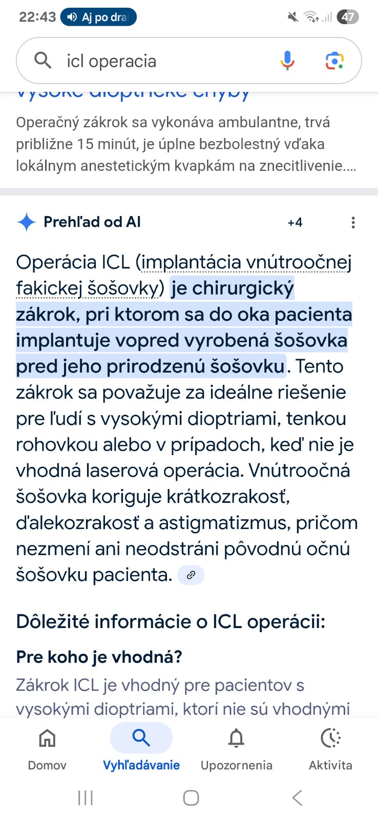 @anonym_autor mozem sa ta spytat, kde ti to robili? Mne dost domrviki operaciu laveho oka u veseleho. Sosovka je ok, ale dostal som zapal a takmmer prisiel o oko. Zachranila mi ho primarka ocnej kliniky na antolskej. Povedala, ze odtial maju dost pripadov.