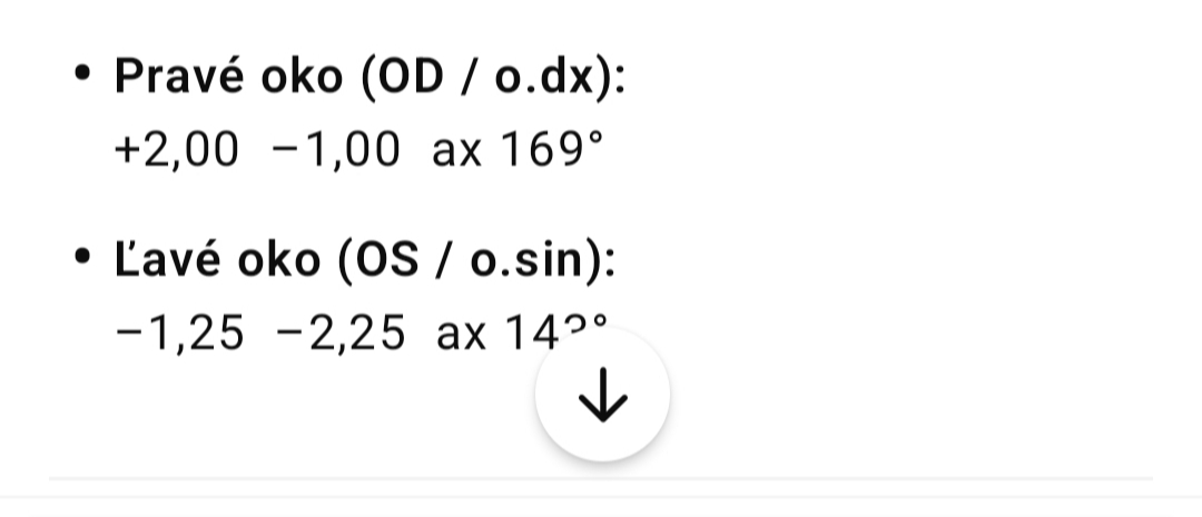 @kleopatra32 nie, toto sú hodnoty čo mi zostali na očiach. Do okuliarov mi dali slabšie lebo povedali, že na to si hlava nezvykne. Ja som mala aj pred tým problém, extrémny rozdiel v dioptriách, preto som šla na operáciu.. a v podstate je to ako z kaluže do blata 🙄 .. pred tým som nemala plusové len mínusové dioptrie.