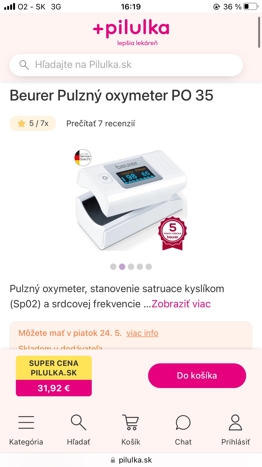 ale na meranie tepu je lepsi oxymeter beurer od PO 30 vyssie..