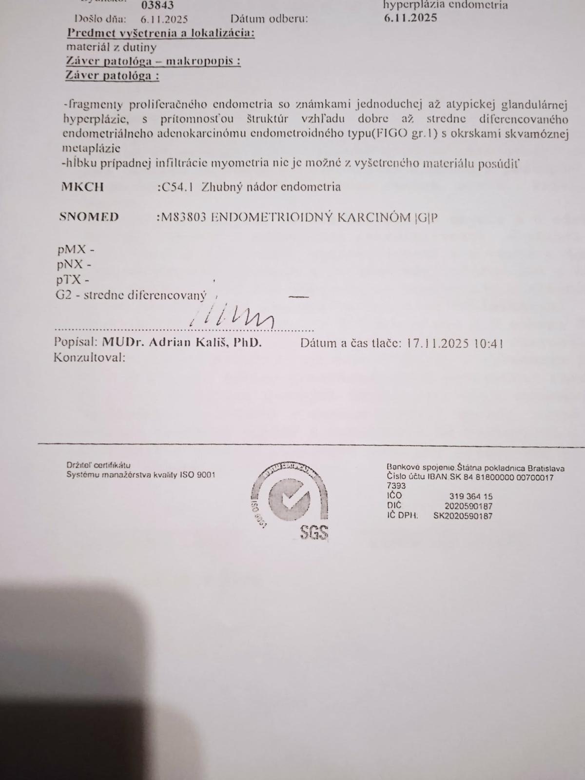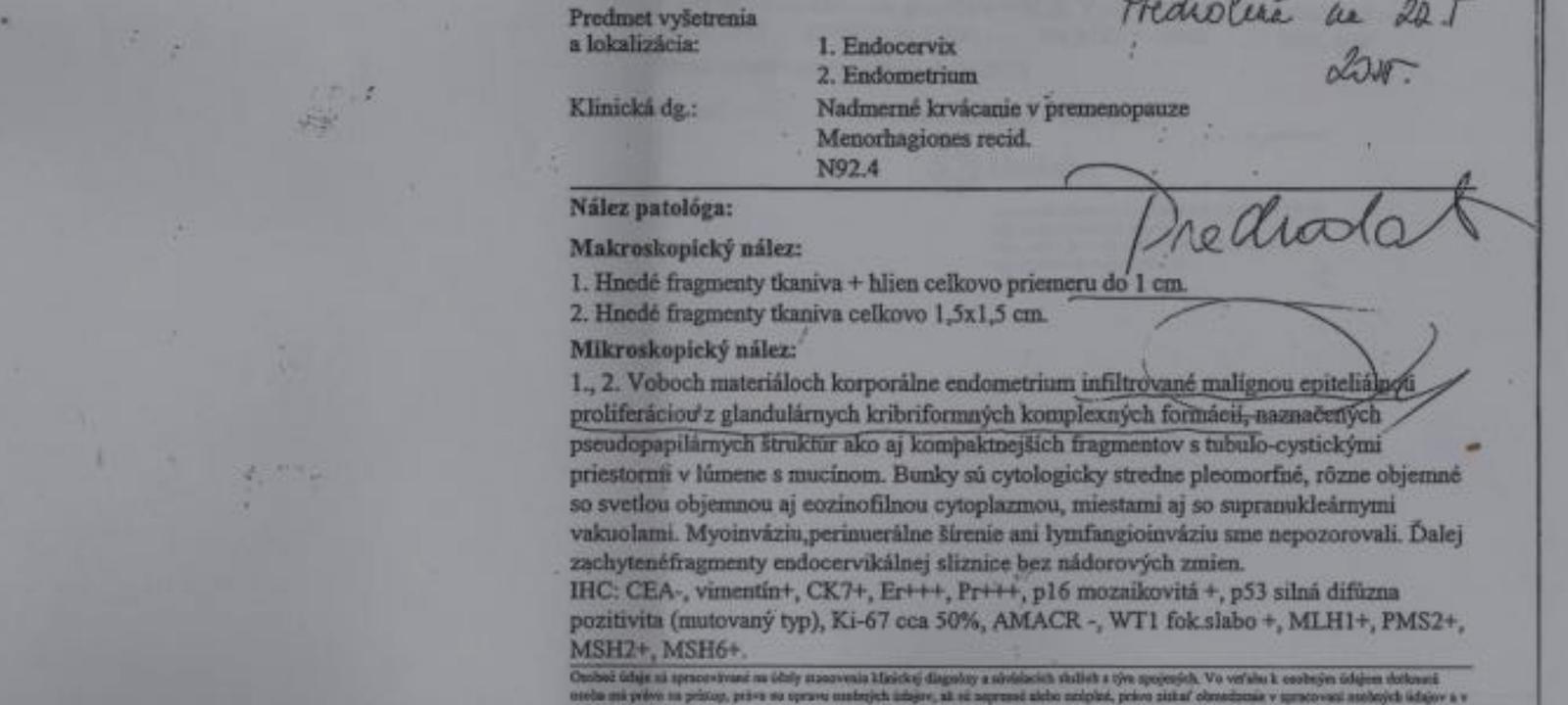 @majkabr dva týždne po operácii volal môj muž, neviem či už bola aj skôr, no ja som sa tak bála, že som nevedela ako sa odhodlať a zavolať, ale ako som písala 10-14 dní bolo písané v prepúšťacej správe. No ten Martin to chcel primár u ktorého v nemocnici sa mi kyretáž robila, takto si dohadzujú pacientky to už som sa potom dozvedela, mne veľmi ublížil pretože s takým nádorom naťahoval čas a možno by aj mesiac veľa spravilo, ak by ma bol inde poslal, ale tak skade som mala vedieť, človek v takej zúfalej situácii, ako bez rozumu. Tak som tam zavolala, že si beriem všetky nálezy a vyšetrenia a idem sama si riešiť. To bolo v piatok, už v stredu som mala konzultáciu v BB a o týždeň operácia. Nebolo nikoho s kým by som sa poradila, hľadala som aj tu na koňovi, ale tu sa veľa nedá nájsť o takejto diagnóze, len iné sú.