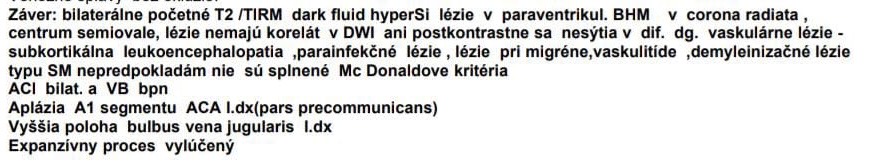 Ale teda, hlavne máš lézie v bielej hmote - popisujuci lekár vylúčil diagnózu skleróza multiplex