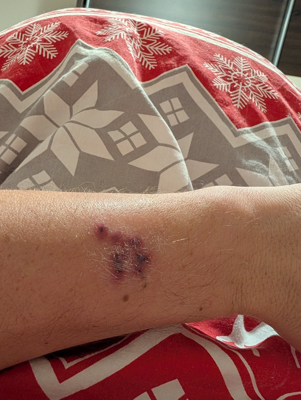 Ahojte ľudkovia, skôr jak navštívim kožnú doktorku (teraz cez sviatky sa tam nedostanem) sa chcem opýtať co si tom myslite. Na ruke sa mi minulý týždeň v piatok vytvoril zvláštny úkaz 🙂 najprv to napuchlo, potom odpuchlo a teraz takto zacervenalo. Nevyzerá to vobec pekne a celkom to bolí. Stačí že sa mi zježia chlpy od zimy a bolesť graduje 🙂 To biele okolo je iba vyschnutý Fenistil.