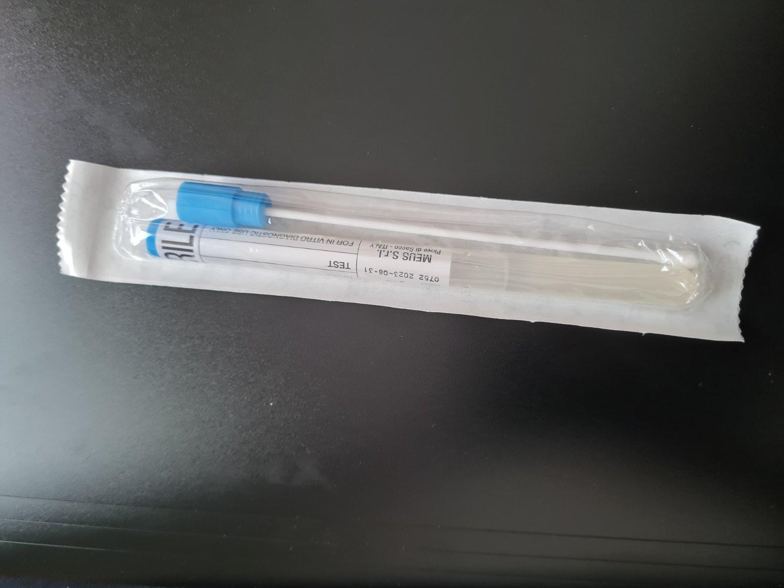 Ráno po stolici zaviesť túto "tycinku" do konečníka tak aby ten tampón bol hlavne vo vnútri... Pokruzit vytiahnuť a strčiť do skúmavky
