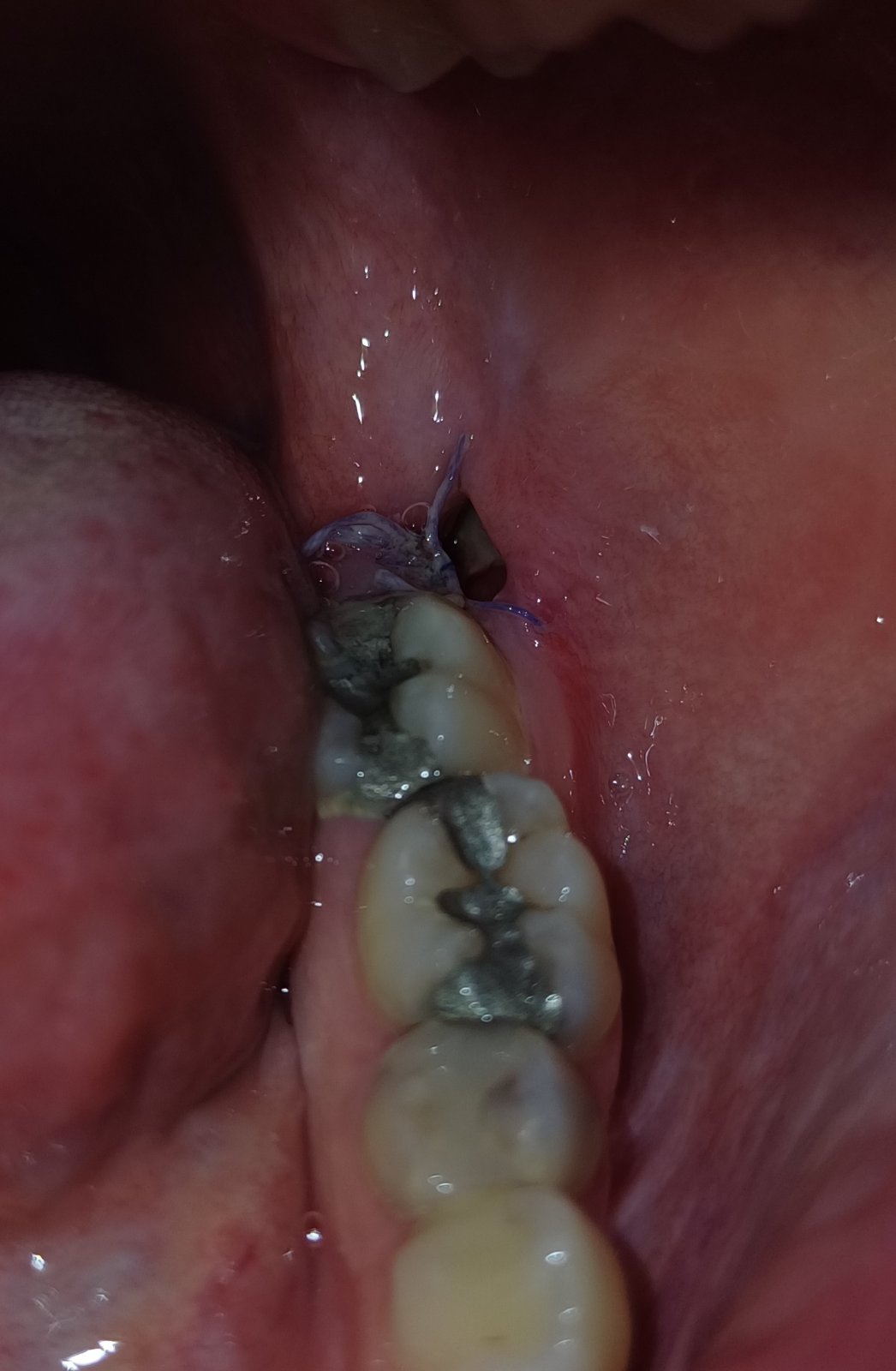 Úplne normálne hojenie, to biele je chrasta len zbavená farby v dôsledku slín, čo je úplne normálne, a stehy ak sú vstrebatelne asi tak do mesiaca sa rozpadnu. Ale ak dávali normálne treba ich vybrať. Sú pacienti ktorým vadia aj vstrebatelne a nechávajú si ich vybrať. Bolesť po trhani je normálna. A nesparat sa v tom zbytočne, jest na druhej strane a po jedle vyplqchnut ústa vodou čistou. A len kefkou umývať zuby a tam opatrne aby sa tá chrasta nedala prec.