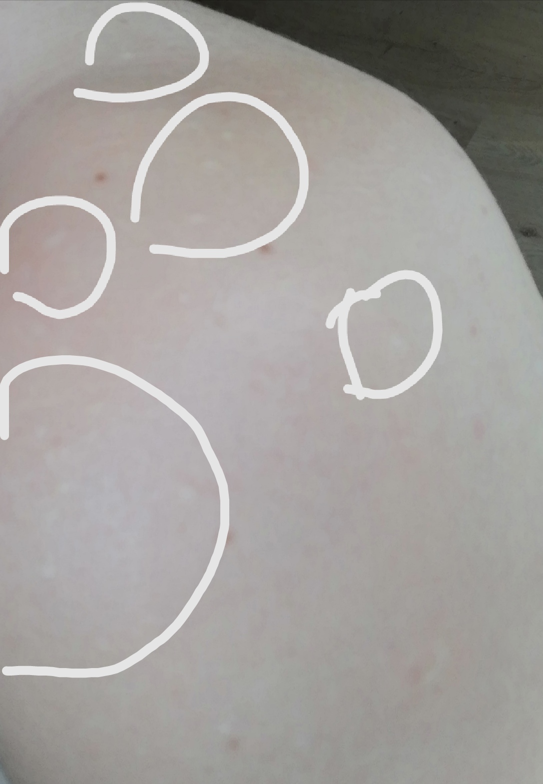Dobry den. Mam mam na pleciach male biele bodky. Skusala som ich odfotit ale zial, fotak na mobile mi to moc neumoznil, takze som postihnute miesta zakruzkovala. Vseobecny obvodny lekar mi povedal, ze je to asi mykoza, nech si ich natieram kremom Canesten. Krem pouzivam kazdy den uz takmer 2 mesiace ale stale ziadna zmena. Su to bodky, nie skvrny. Nepali, nesvrbi. Takze netusim co to moze byt.