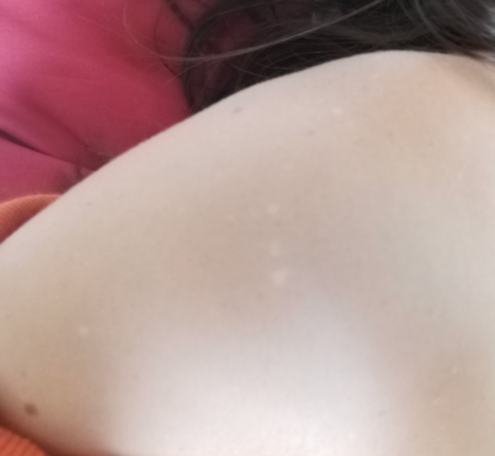 Pityriazis vertricolor....kožná pleseň...vyzerá to tak...smer kožná, dá mastičky, prejde