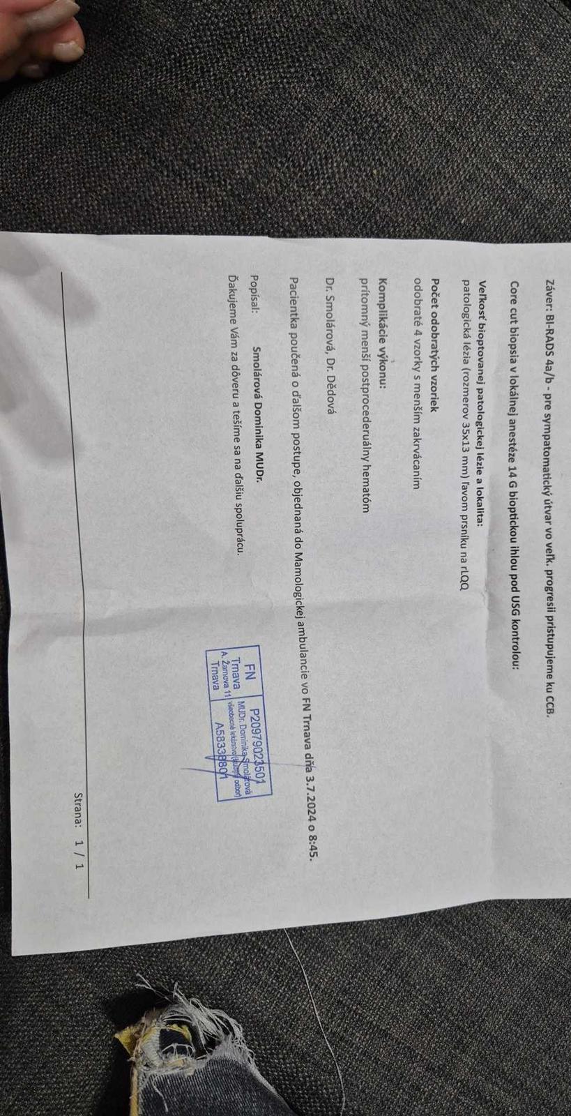 @arcenciell Ahoj, neviem aký si mala pocit z doktora /doktorky pri biopsii. Mne keď ju Dr.robil, už som na ňom videla,že to nebude dobré, aj keď sestrička má ukludňovala, že to môže byť fibroadenóm, tie zvyknú rýchlo narásť. Ja mám 3.7.plánovanú operáciu prsníka v TT. Držím palce.