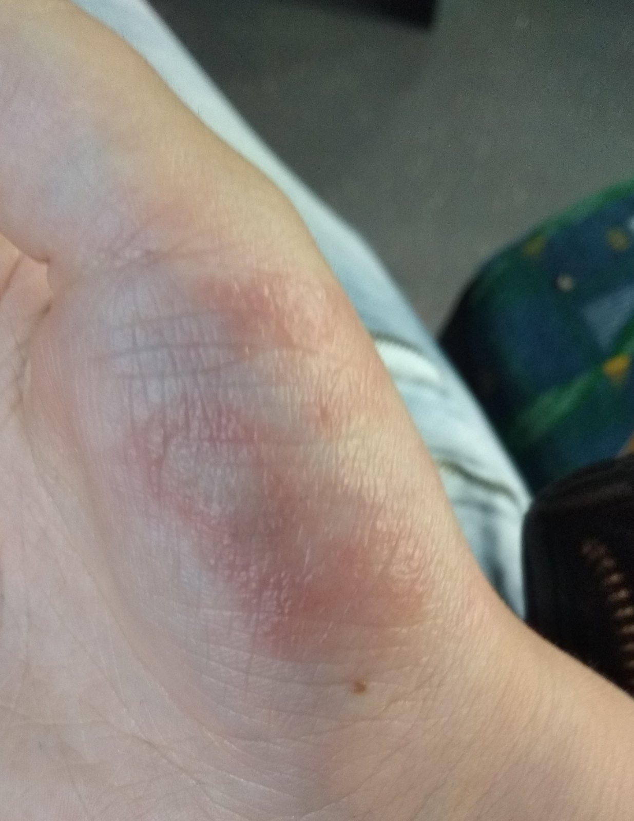 Niečo podobné som mala.Je to suché s mini pľuzgierikmi,z ktorých vyteká voda.Kúpte si Ialungen plus gél. Predtým miesto vydezinfikovať klasickou starou dobrou Alpou,následne natrieť a prelepiť,aby mohol gél účinkovať.Snáď Vám to pomôže,ja som takto dlaň vyliečila.