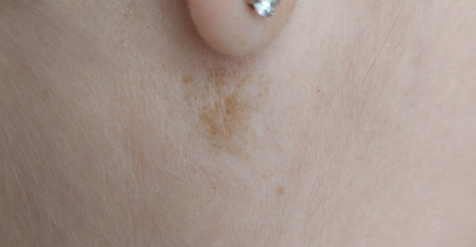 Ahojke chcela by som sa opýtať nevie niekto čo by to mohlo byť ? Mám to za uchom škvrna alebo od slnka alebobčo to je ? ĎAKUJEM
