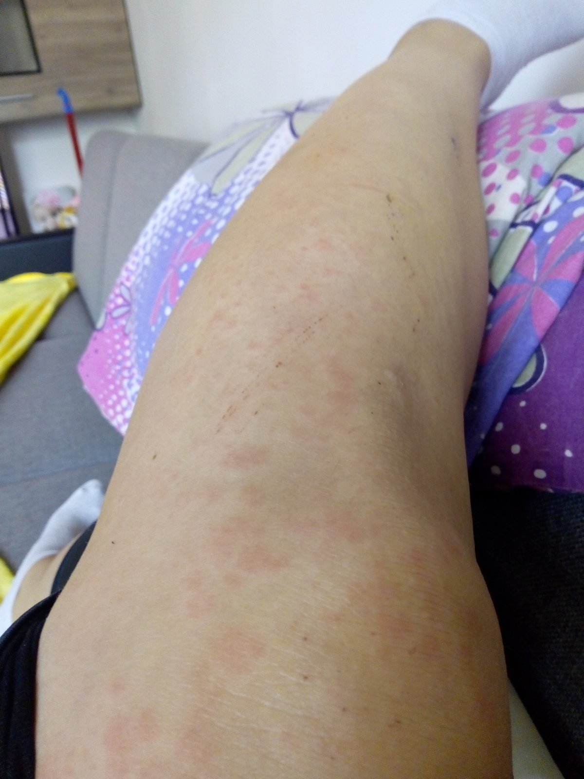 Mne toto prave pripomina zihlavku, je to alergicka reakcia na nieco. Tiez to svrbi, potom to zmizne a zase sa objavi.