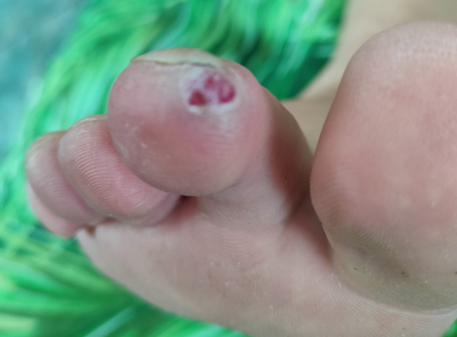 Dobrý deň, fotka je akurát na danom mieste rozmazaná ale aj podľa toho čo vidno a takej dlhej doby určite odporúčam návštevu lekára. Nemáte cukrovku? To by vysvetľovalo dlhé hojenie a necitlivosť bolesti. Zatiaľ by som si to poriadne vyčistila, napr. betadine a prekryla sterilným krytím. Takto keď je koža porušená vyše mesiaca, je to parádna vstupná brána pre infekciu. Ak neviete ako sa do návštevy lekára o ranu starať, môžete sa opýtať v skupine Zdravotníci na MK - sú tam aj skúsené zdravotné sestry.