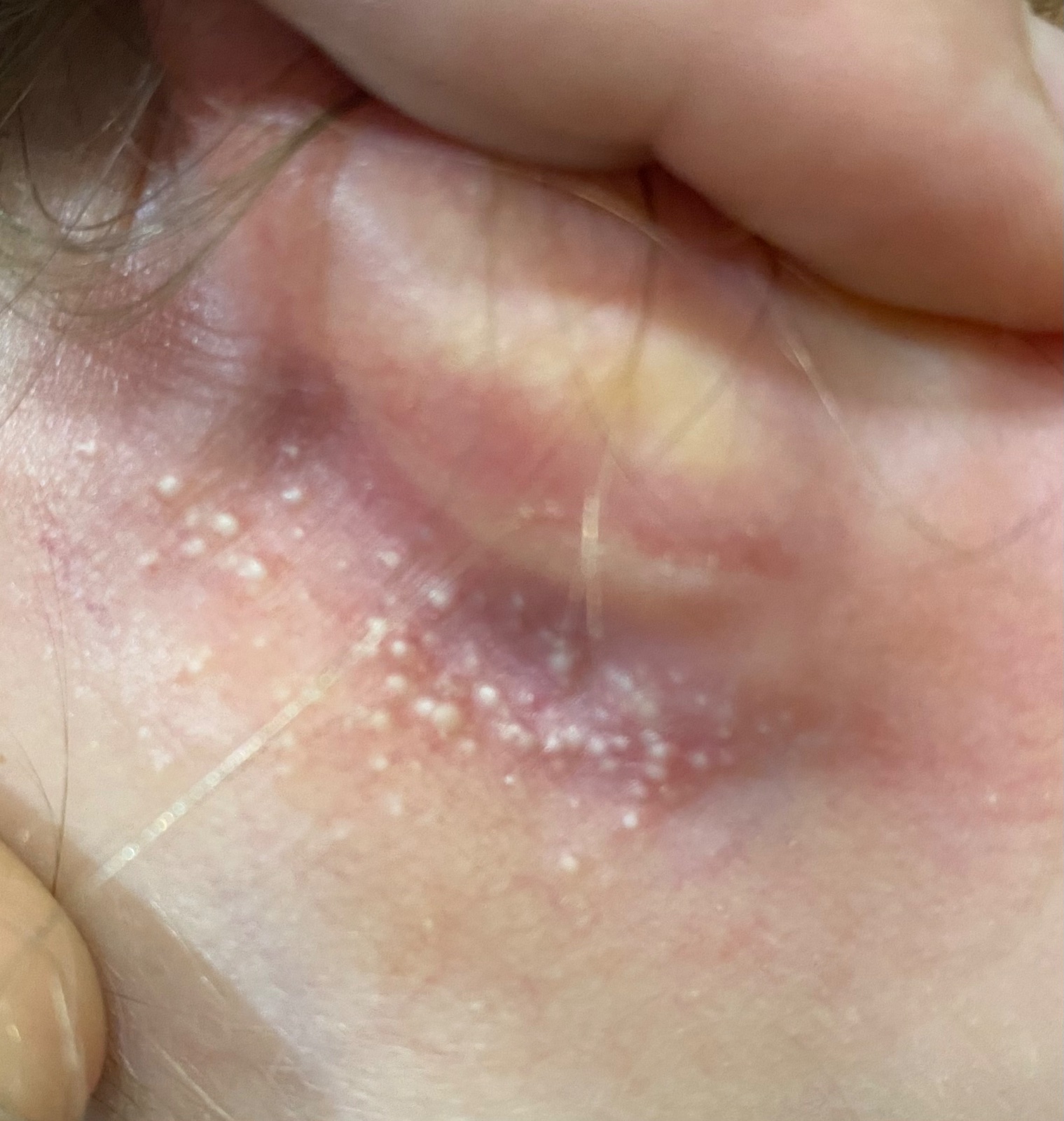 toto sa mi urobilo za uchom, asi pred týždňom som to zistila prvý krát, ale myslela som si, že to je vyrážka cítila som jednu guľku, ale za cca týždeň je toho veľa a keďže za ucho si nevydím až teraz som to odfotila a neviem čo robiť?! Asi ísť ku kožnej? Nechodím k lekárom s každou hlúposťou ale toto sa asi rýchlo rozširuje.