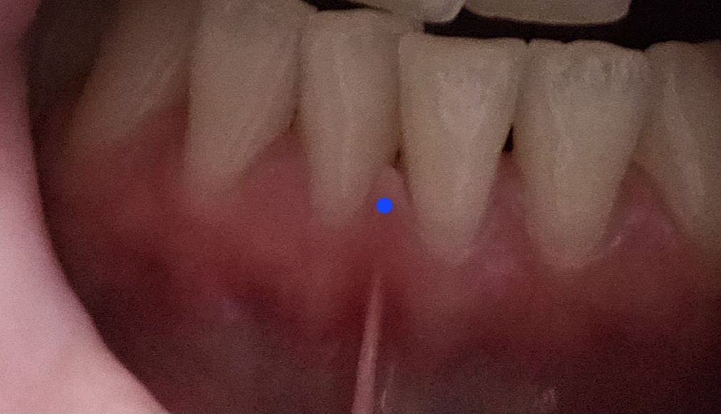 Robí to pravdepodobne uzdička na spodnej pere, vyvija tlak na ďasno a spôsobila aj krivenie zubov. Bolo by dobré to prekonzultovať so zubarom a nechať odstrániť. Môže neskôr zhoršiť situáciu a byť príčinou vzniku paradentozy, odhaľovania krckov zubov atď. Ak si chytíš ukazovakmi a palcami spodnú peru a ohrnies ju von a jemne potiahnes, môžeš vidieť na dasnach, že beleju, to je ten tlak, plus pripadne to môže aj bolieť trocha.