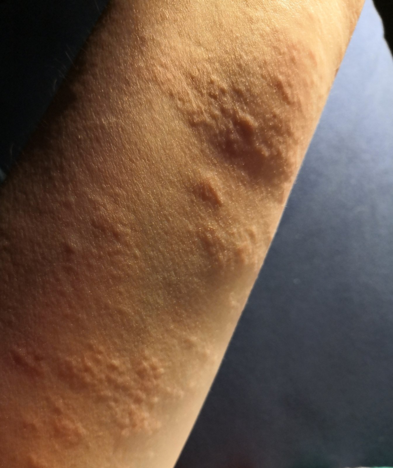Môže to kludne byť žihľavka podľa toho ako to vyzerá, forma alergickej reakcie. Hlavne to neskriabať a antihistaminika by mali pomôcť 🙂
