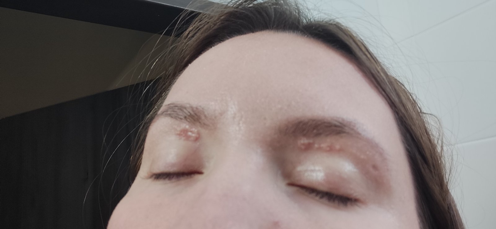 v utorok som bola pri kozmeticke na obocie (tvarovanie a farbenie). Trhala mi obocie voskovym pasikom a od vtedy mam take na oboci.. dost mi to taha oko, tym, ze je to take stvrdnute tak som myslela ci to nie je ten vosk ale dole to neide.. neviete co to moze byt?