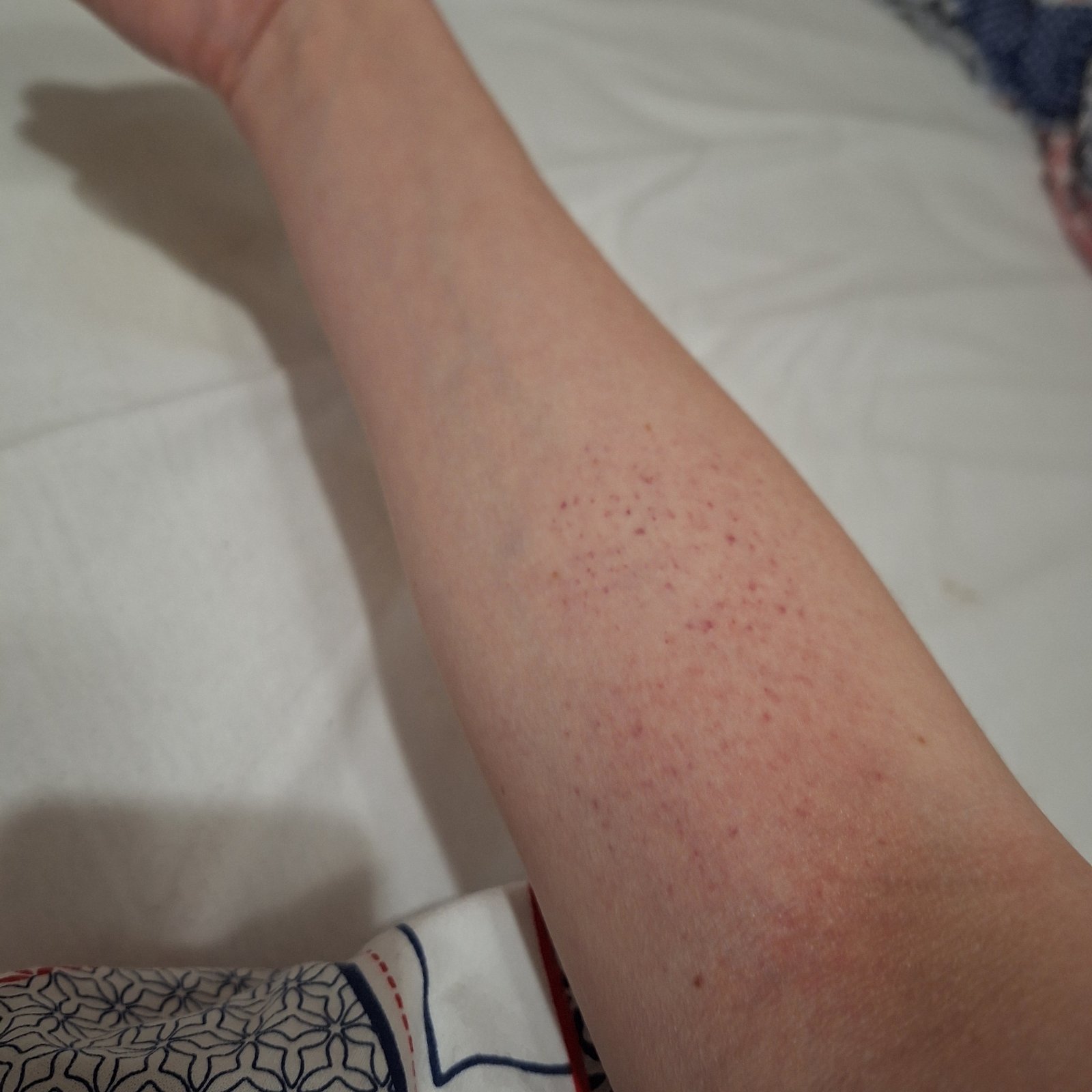 Bud reakcia, alebo petechie. Tie vzniknu aj ked si udries, ci presilis ruku, alebo natiahnes sval (popraskaju drobne zilky, vlasocnice pod kozou).
