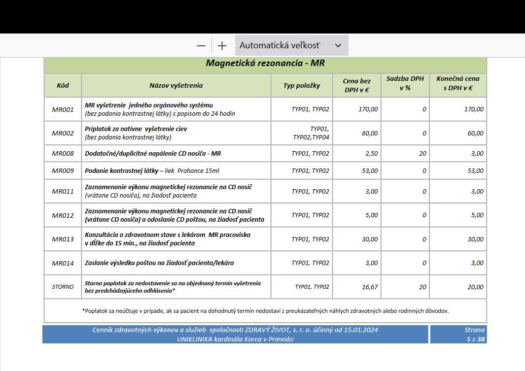 MRi aj ako samoplatcovi myslim 300€ cca mozno viac