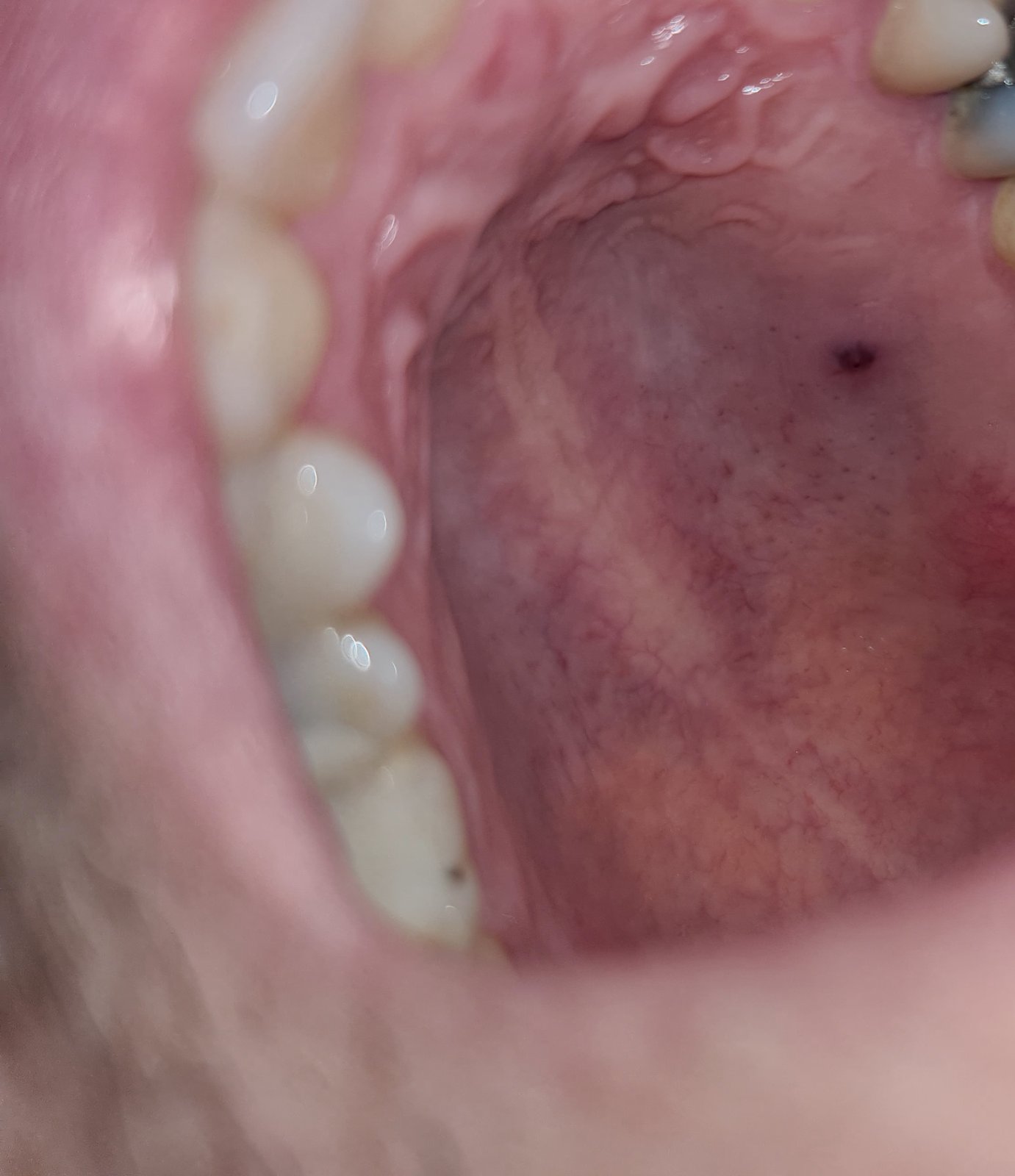 Divná fialová bodka v ústach